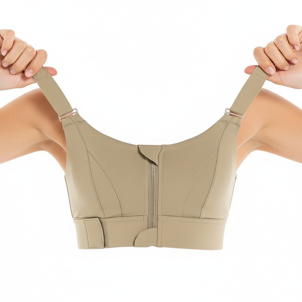 Zip frontal pratique, bretelles ajustables, support antichoc renforcé, disponible en grandes tailles